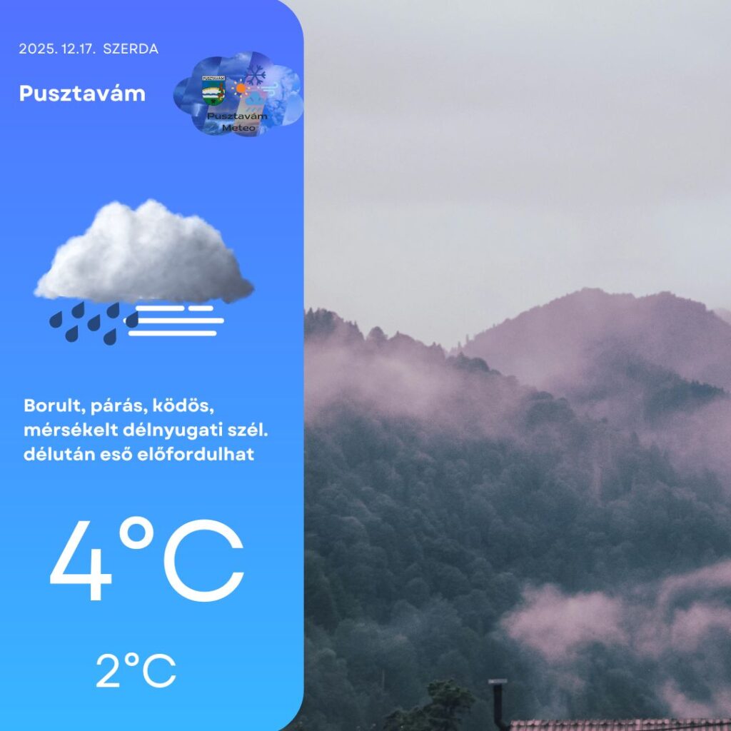 Az esti óráktól ismét erősödik a párásság, helyenként köd képződik, a hőmérséklet 4°C körül alakul 🌫️.
