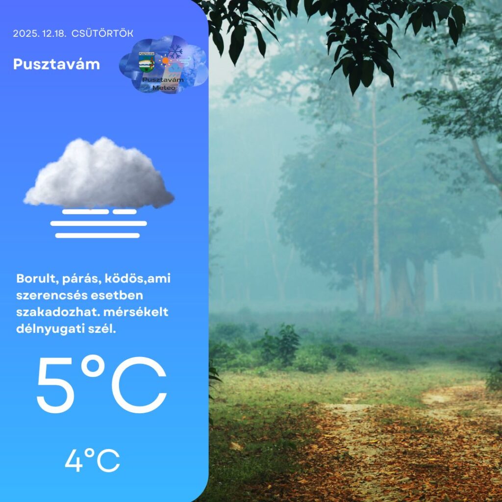 Csütörtökön a reggeli köd és pára fokozatosan ritkulhat, a szerencsésebb területeken akár fel is szakadhat a ködfelhőzet, és rövid időre a Nap is előbukkanhat 🌥️.