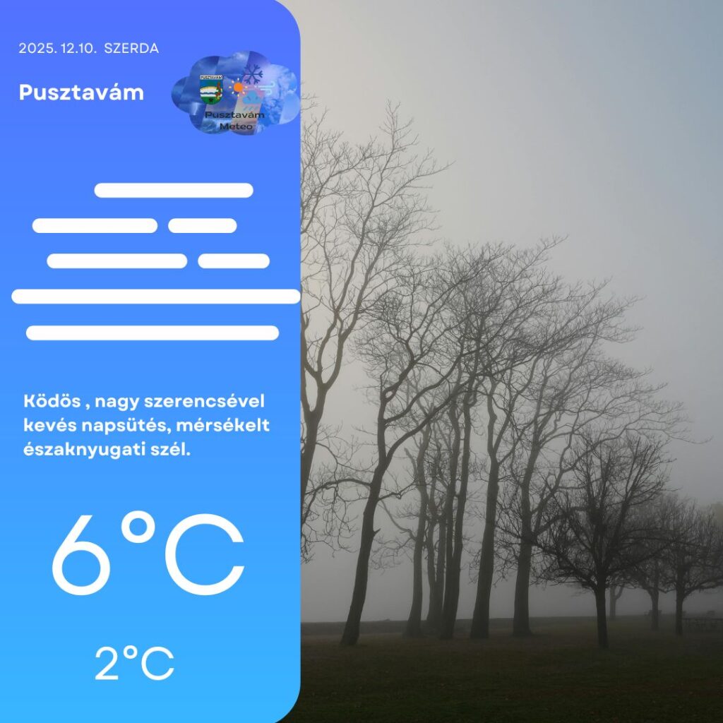 Szerdán reggel ködös, párás időre ébredtünk 🌫️. A délelőtt további részében is nagy eséllyel marad a szürkeség, napsütésre csak nagyon nagy szerencsével számíthatunk 🌥️. A szél gyenge, változó irányú marad.