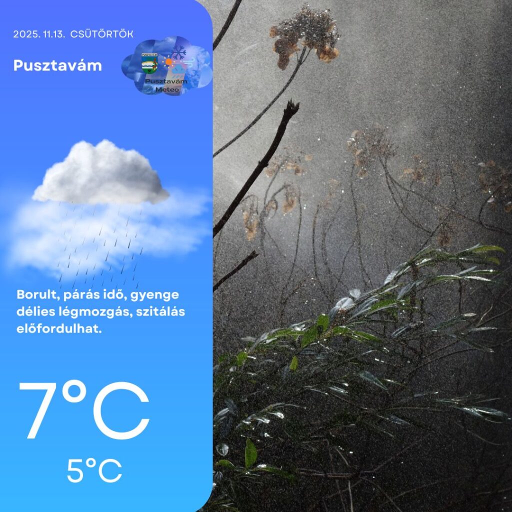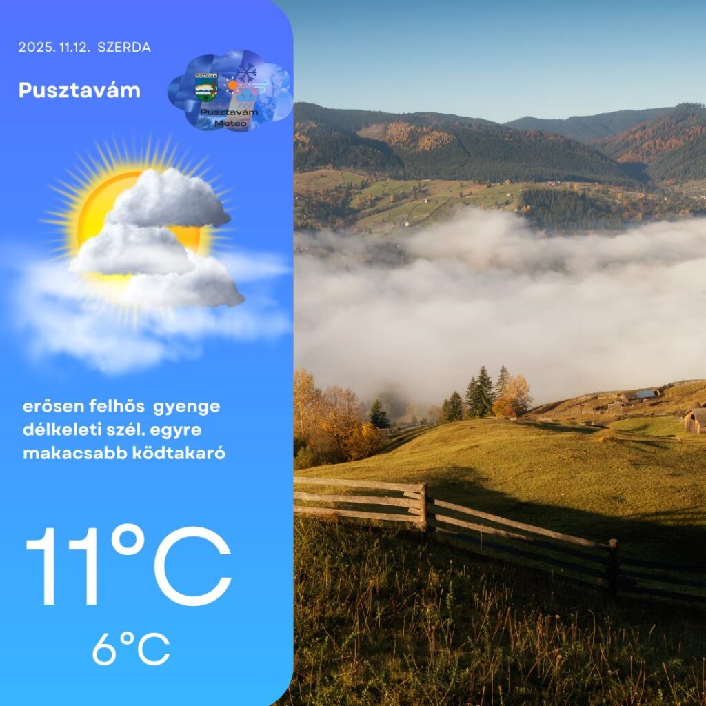🌫 Csütörtökön és pénteken a reggeli órákban szinte országszerte ködös, Pusztavámon párás időre számíthatunk, napközben pedig tartós, zárt ködfelhőzet boríthatja az eget.