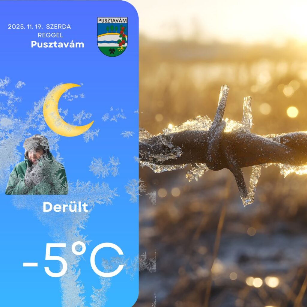 Szerda reggelre a front mögött beáramló hideg légtömeg nyugalomba jutott, és a derült ég miatt erős kisugárzás indult meg. A bejegyzés írásakor az állomás –5,7°C-ot mutat, de a fagyzugos területeken és napkeltekor ennél jóval alacsonyabb értékek is előfordulnak. 🥶