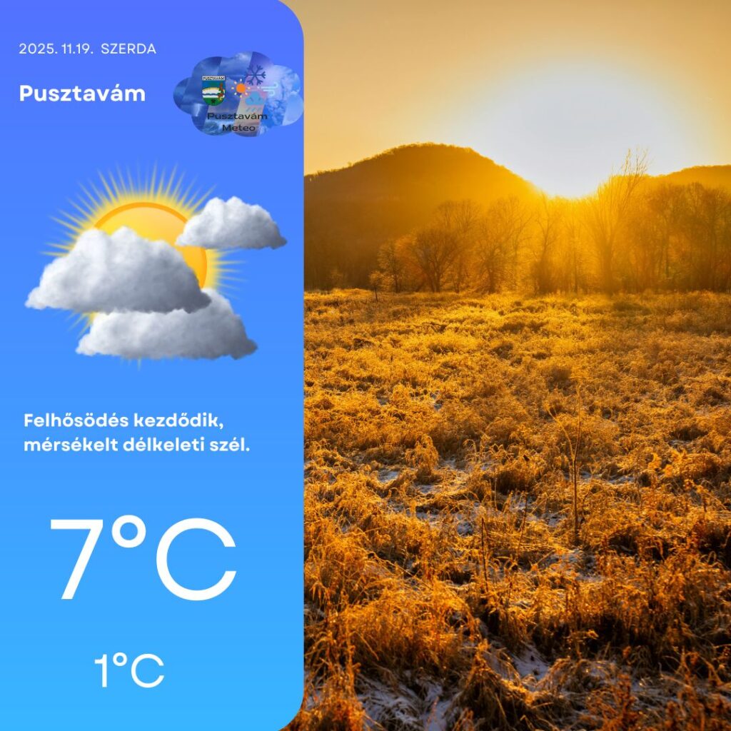 Napközben változó, helyenként növekvő felhőzet lesz felettünk, melyet gyenge–mérsékelt délkeleti szél sodor. 🌥