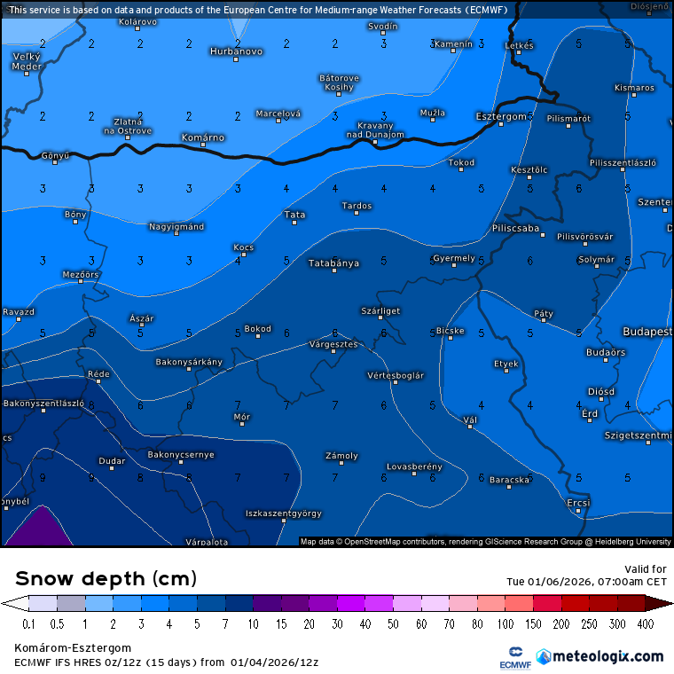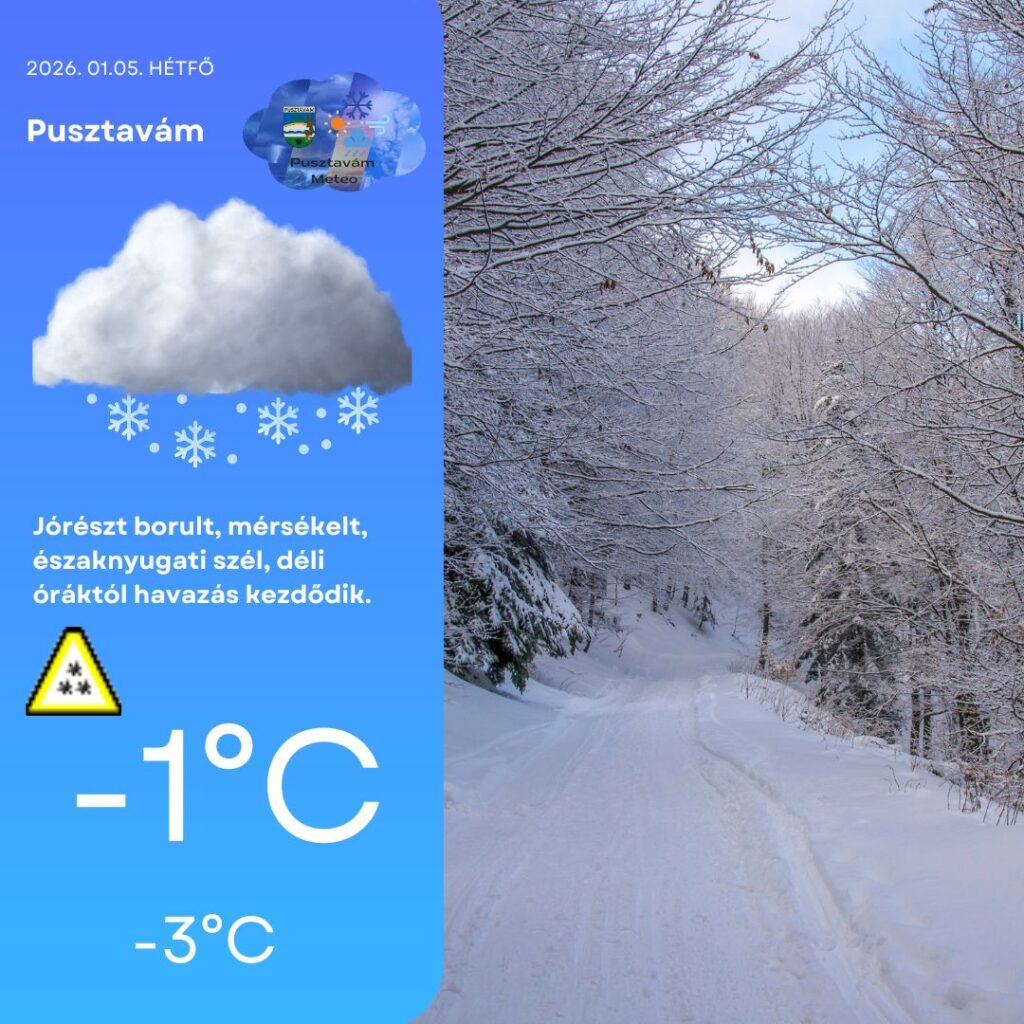 📏 Pusztavám térségében 3–7 cm friss hó várható.