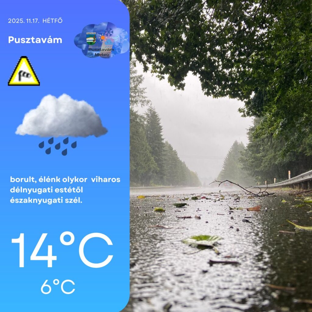 💨 Napközben élénk délnyugati szél fúj, amely a front közeledtével északnyugatira fordul és megerősödik.