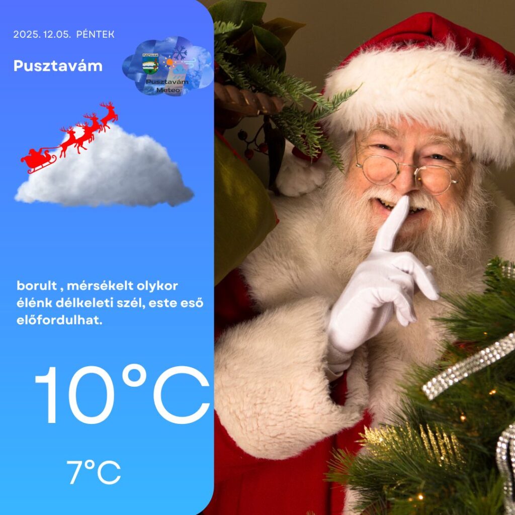 Péntek reggelre megszűnt a csapadék, de napközben borongós, felhős idő marad fölöttünk. A délkeleti szél mérsékelt, időnként élénk lehet egészen a délutáni órákig, amikor északnyugatira fordul, és ezzel újra eleredhet az eső. A levegő hőmérséklete egész nap 9–10°C között alakul.