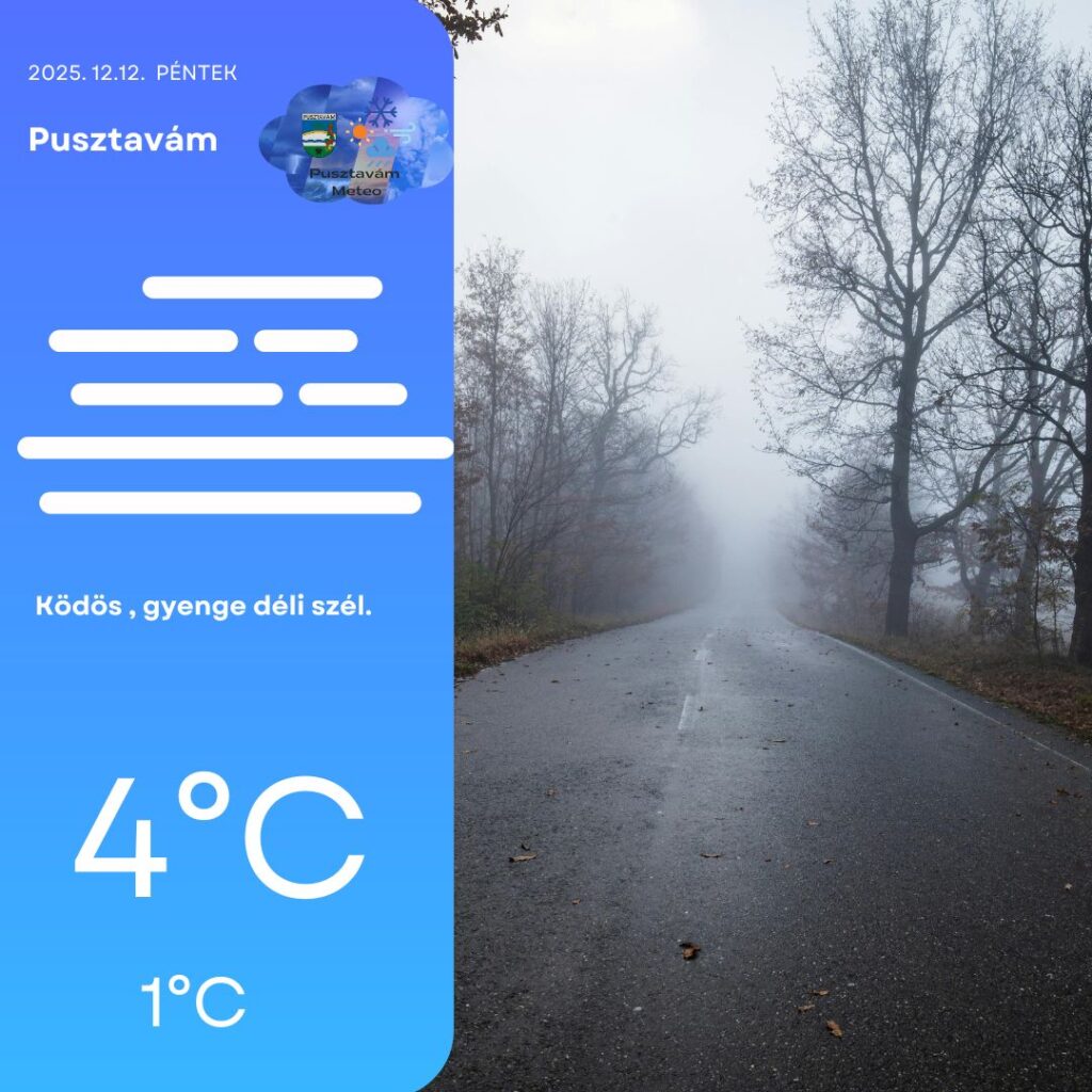 Szombaton nagy valószínűséggel egész nap megmarad a köd 🌫️. A légmozgás gyenge marad, jelentős keveredés nem várható, így a levegő hőmérséklete kis napi hőingással 1 és 4°C között alakul.