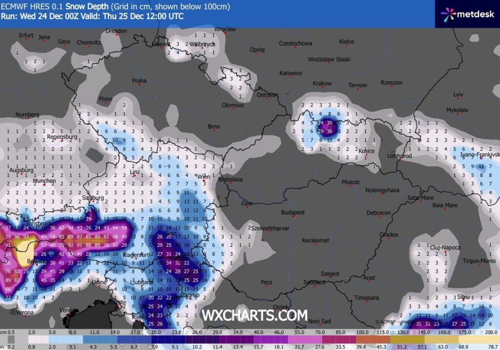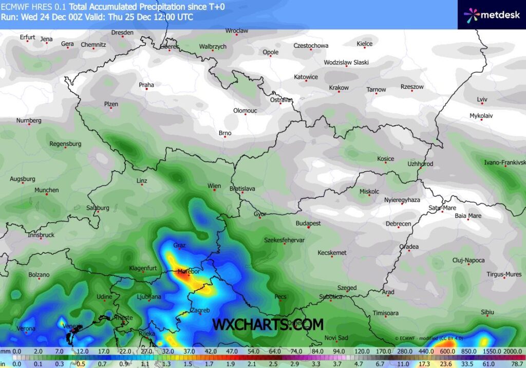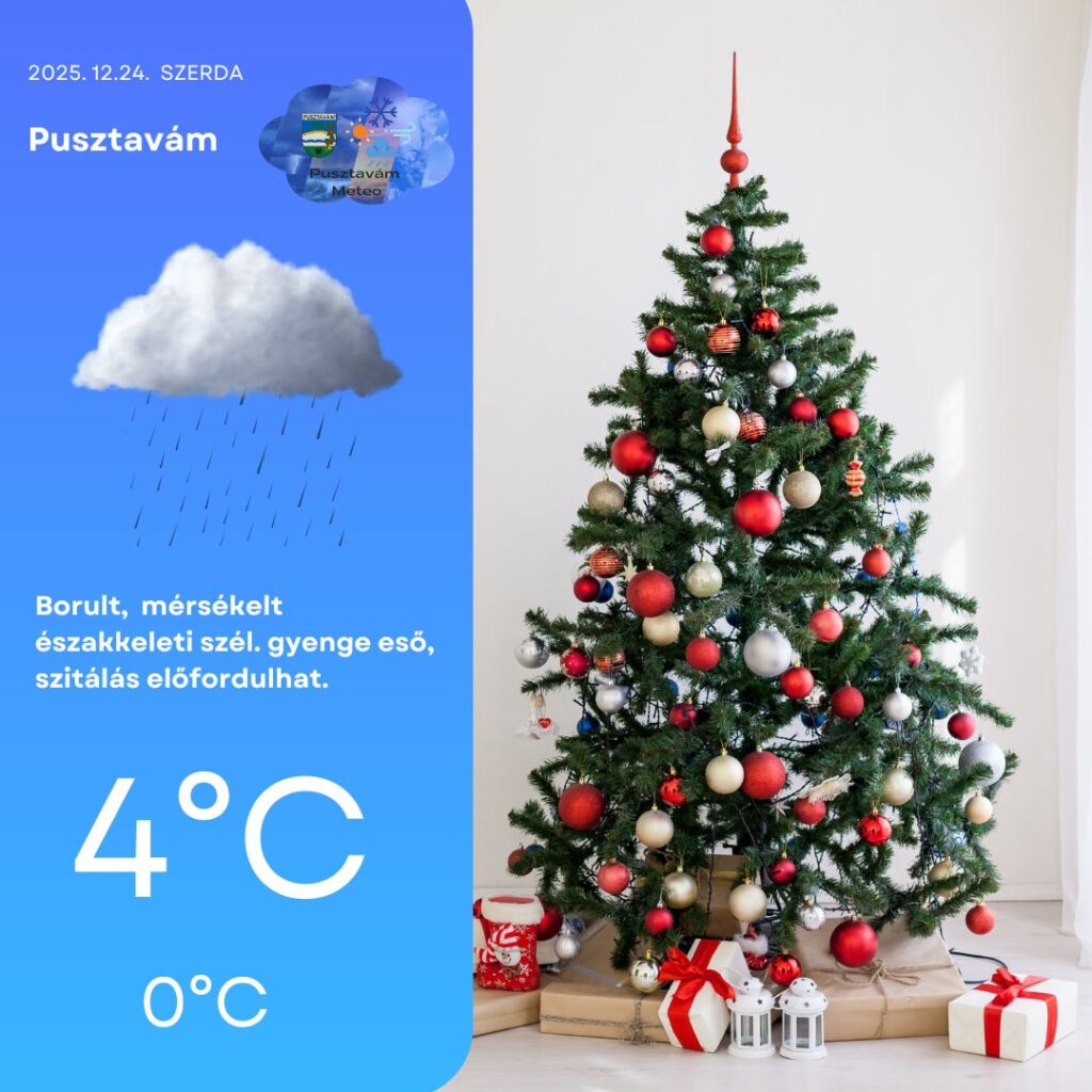 🌧️ Csütörtök délelőttig még előfordulhat gyenge csapadék, ezt követően azonban az ünnepek alatt már nem várható számottevő utánpótlás.