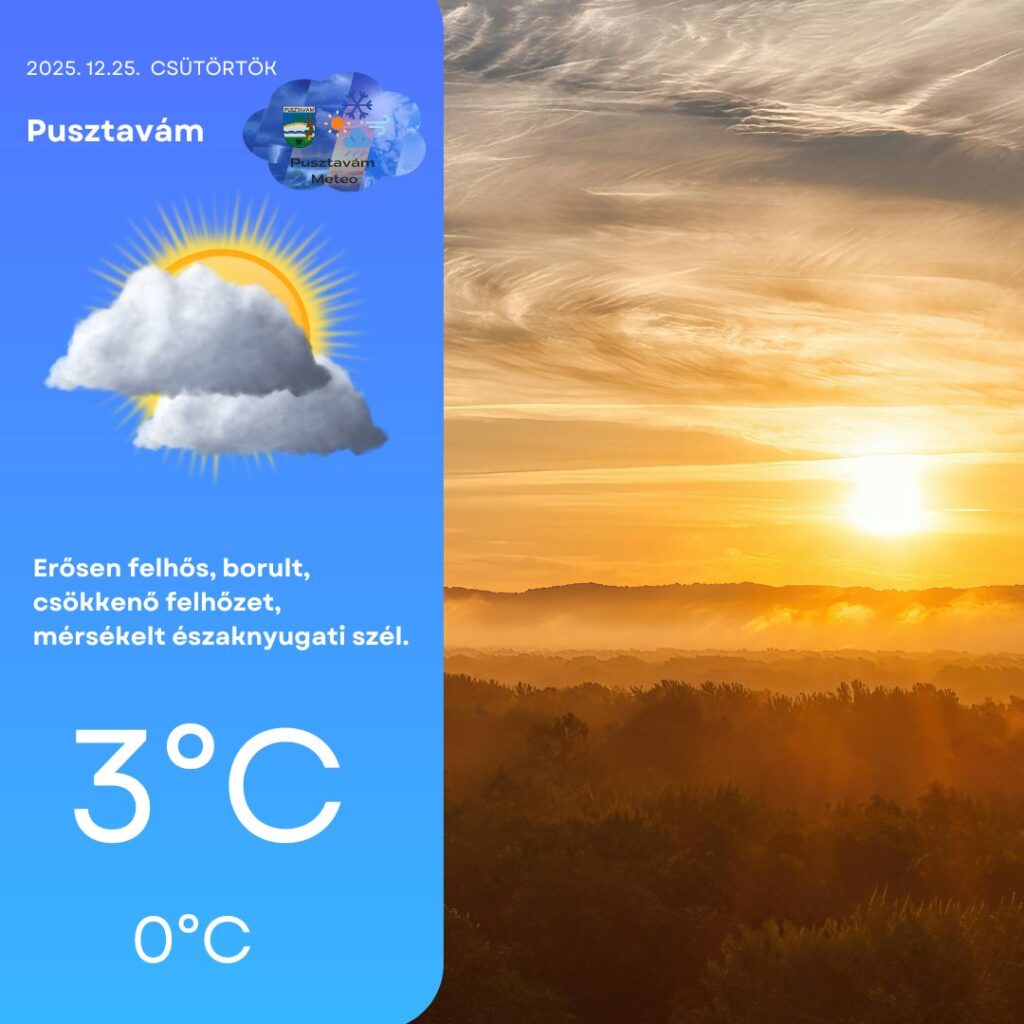 ☀️ Péntek reggelre a felhők teljesen eltűnnek, legfeljebb kevés fátyolfelhő zavarhatja a napsütést.
