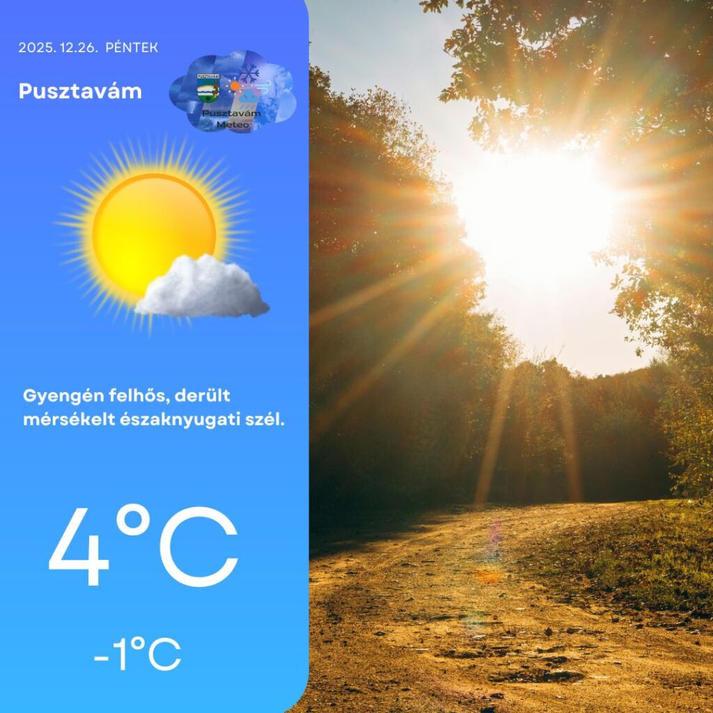 🌤️ Pénteken, karácsony második napján fokozatosan felszakadozik a felhőzet, több órára kisüt a Nap.
