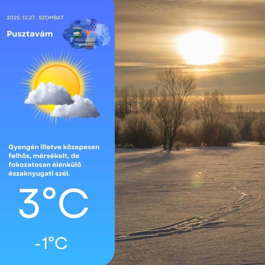 ⛅ Változóan felhős, többnyire napos idő várható, elszórtan egy-egy hózápor nem kizárt, de nem ez lesz a jellemző.