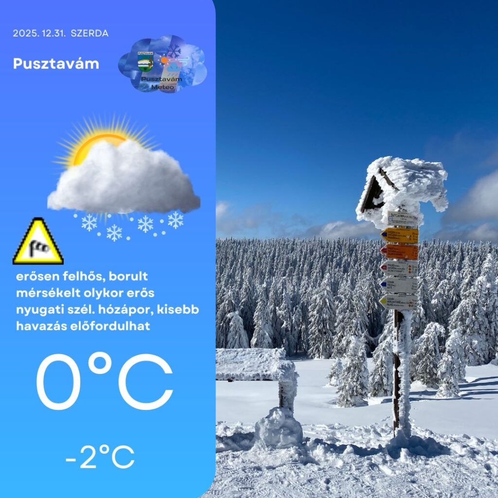 ☁️ Délutántól jelentősen megnövekszik a felhőzet, amelyből hózáporok várhatók, de kisebb kiterjedésű havazás is kialakulhat 2025 utolsó estéjére.