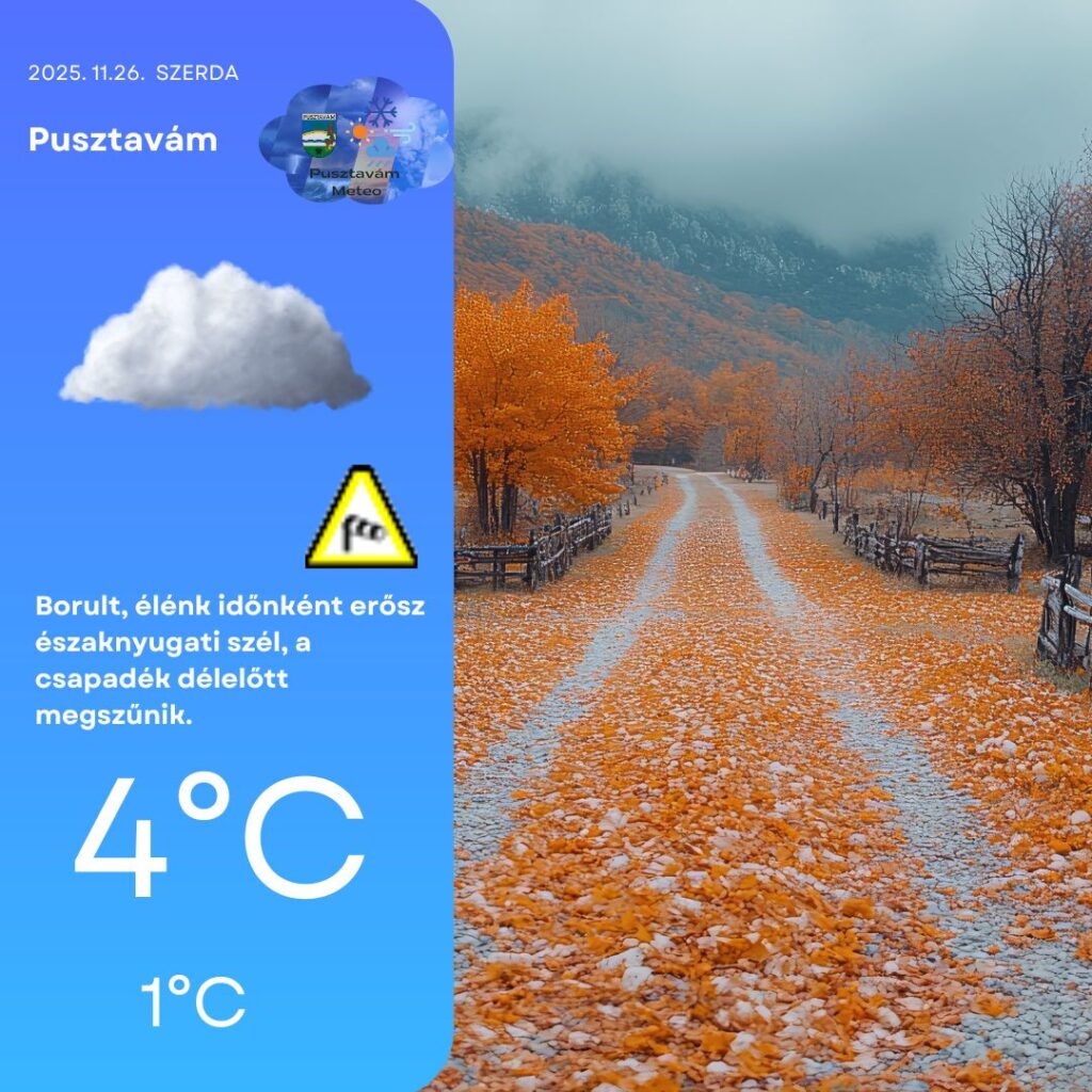 Csütörtökön továbbra is élénk északnyugati szélre és sok felhőre számíthatunk, de számottevő csapadék már nem valószínű. A gyengén fagyos reggelt követően a csúcshőmérséklet ismét 4°C környékén tetőzik.