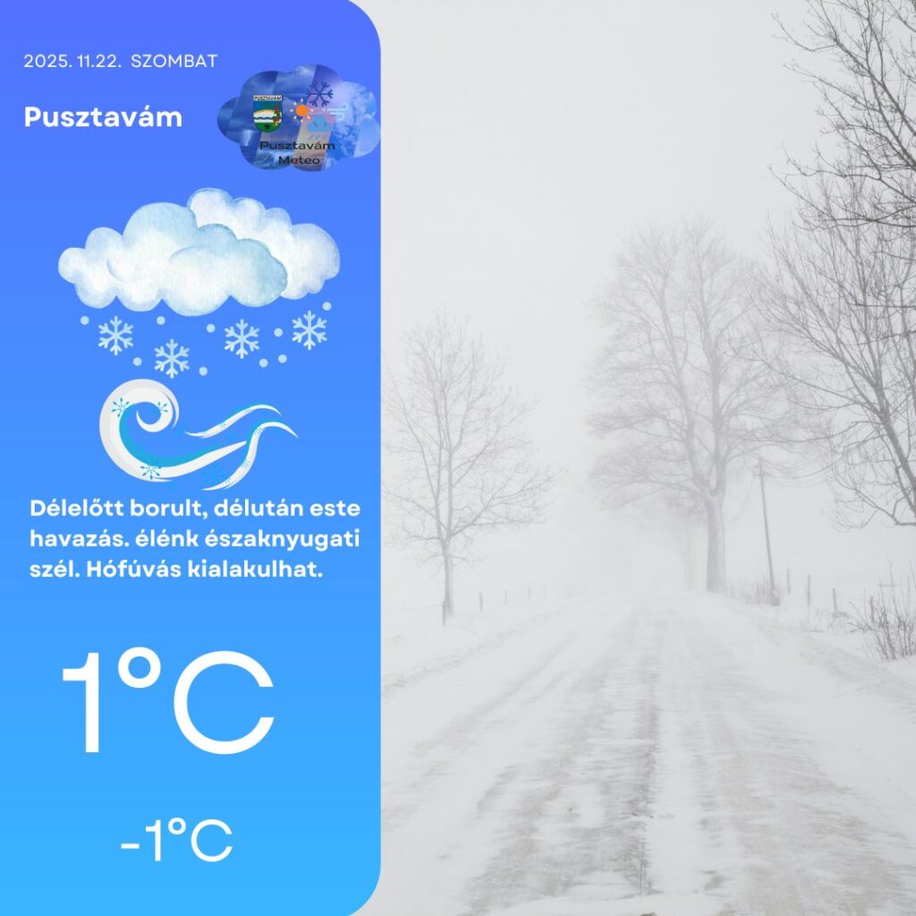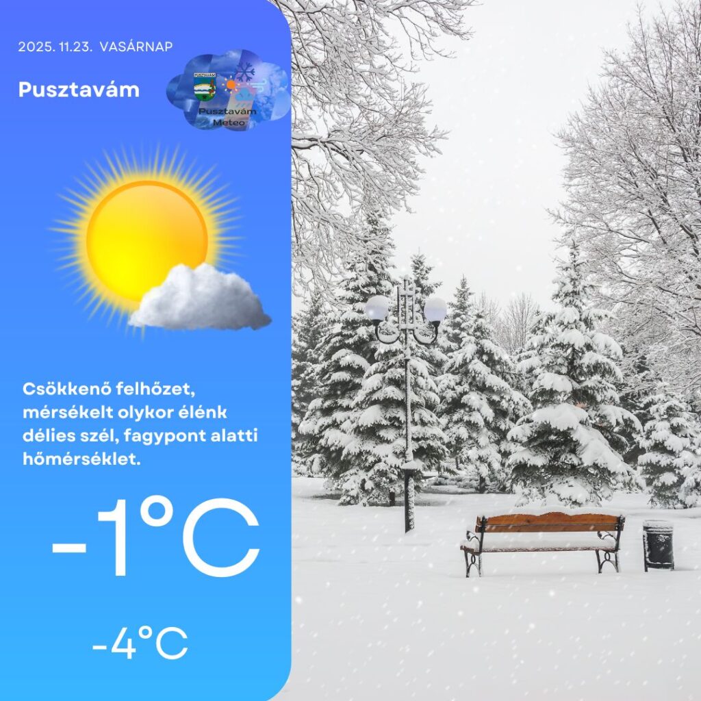Reggelre 9 cm friss hó borítja a mérőállomás környékét, a Bakonyban és a Vértesben pedig ennél is vastagabb hótakaró alakult ki. Napközben további csapadék már nem valószínű; a levegő fagyos marad, a szél mérséklődik, a felhőzet pedig fokozatosan csökken.