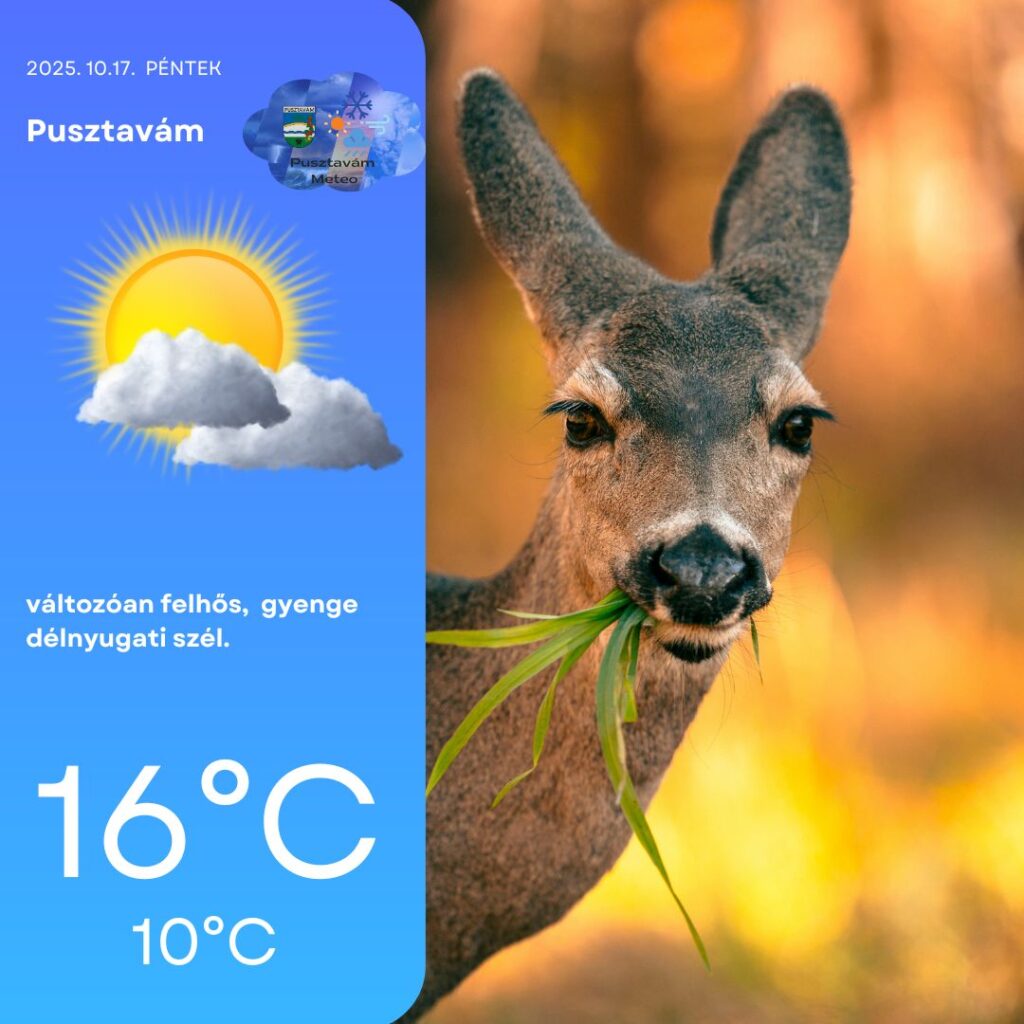Szombaton egy gyenge, érintő hidegfront halad át térségünk felett. A front átvonulását változó felhőzet és élénkülő északnyugati szél kíséri, amely több helyen átmenetileg erősebb lökéseket is produkálhat. A hőmérsékleti görbe kiegyenlítődik: reggel néhány fokkal enyhébb, délután viszont kissé hűvösebb lesz, mint pénteken. A légmozgás következtében a hőérzet is alacsonyabbnak tűnhet a valósnál. Csapadék kialakulása kis esély van záporeső formájában de nem lesz jelentős.