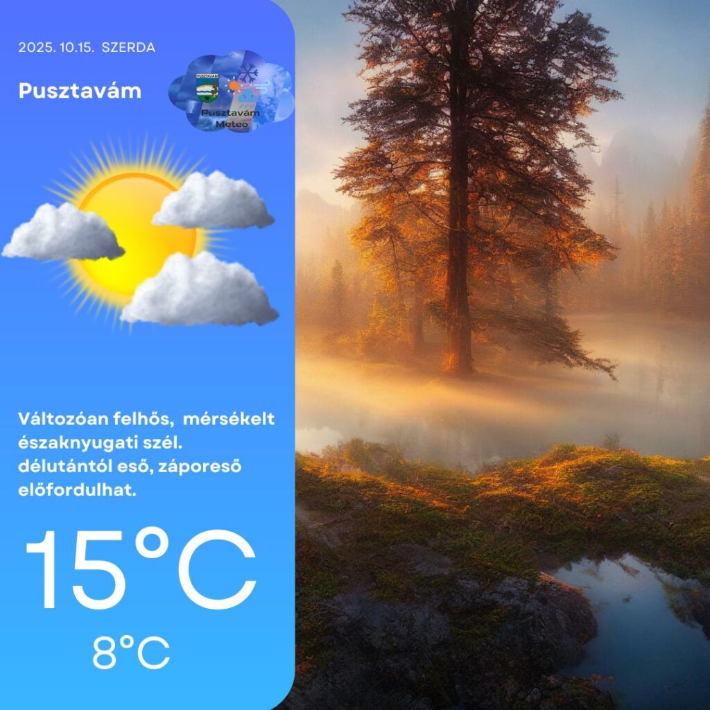 A középtávú előrejelzések alapján a következő 8–12 nap során sem látható számottevő csapadék a modellfutásokban. Az anticiklonális hatás a tovább erősödik, ennek következtében gyengül a nappali felmelegedés, ugyanakkor éjszakánként ismét visszatérhetnek a gyengén fagyos reggelek. A derült, szélcsendes idő kedvez a köd- és párafoltok kialakulásának, amelyek helyenként tartósabban is megmaradhatnak. Összességében azonban továbbra is a sokéves átlaghoz közeli, csendes, nyugodt őszi időre számíthatunk.