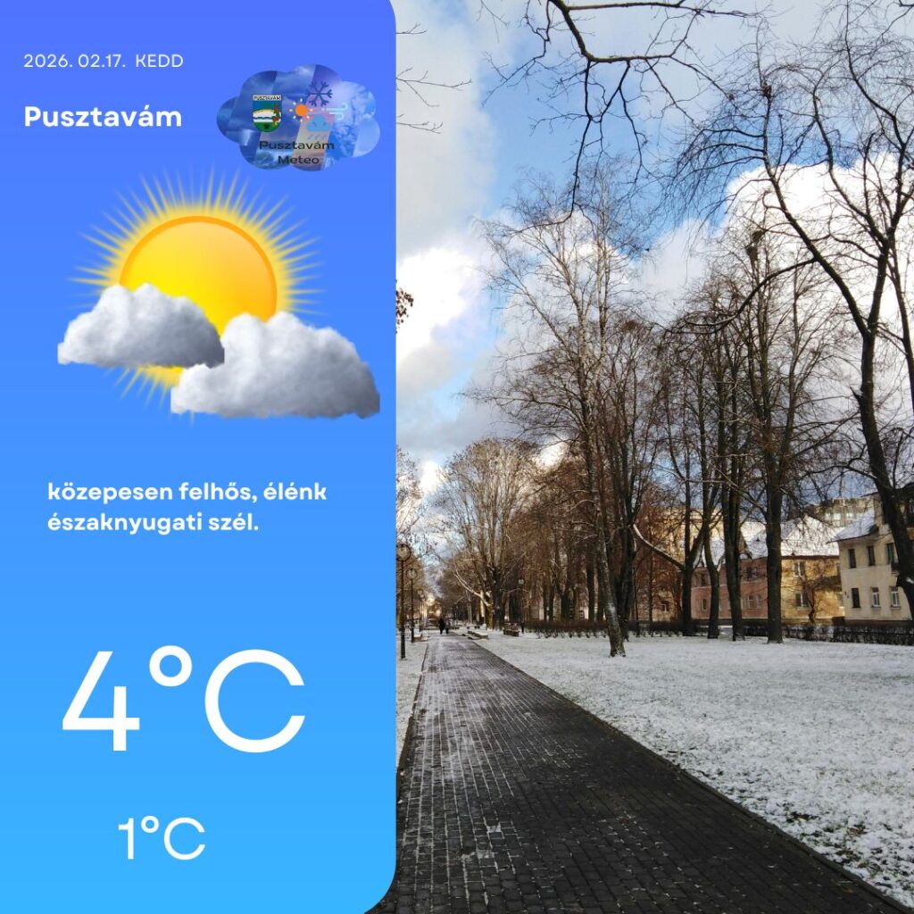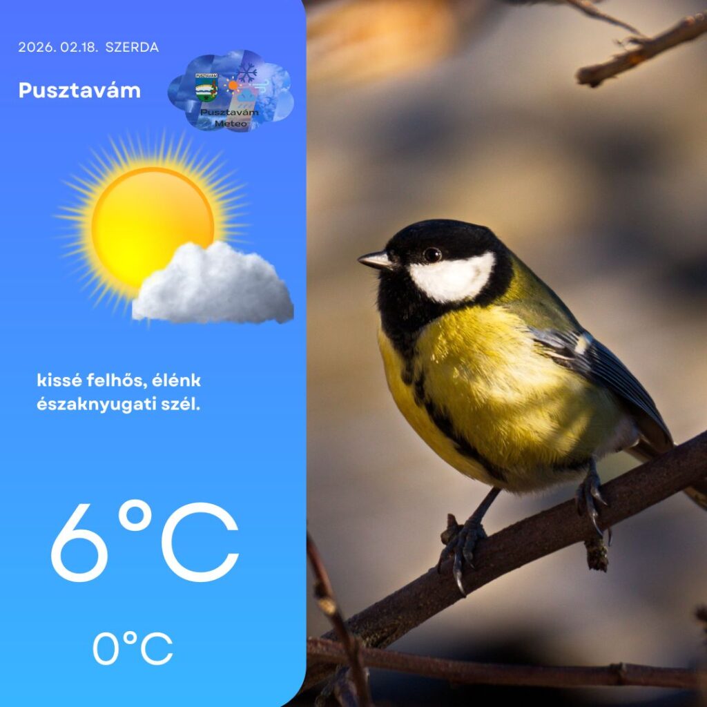 A szél továbbra is északnyugati irányból fúj, időnként egy-egy élénkebb lökéssel, de már nem lesz olyan kellemetlen, mint a korábbi napokban. A délutáni órákban 6°C körüli csúcshőmérséklet várható, ami kifejezetten barátságosnak számít február közepén.