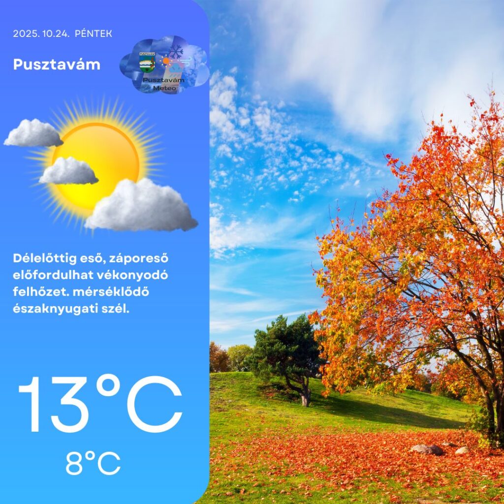 A front mögött sok felhő, szórványos kisebb eső, záporok alakulhatnak ki. A mérsékelt északnyugati szél többfelé élénkebbre vált 💨.