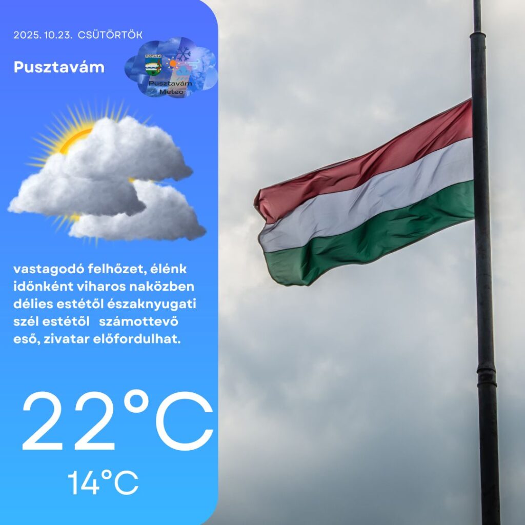 Péntekre virradóan átvonul felettünk a markáns hidegfront, amely kiadós csapadékkal és élénk, időnként erős északnyugati széllel érkezik. A csapadékhullás idején a hőmérséklet 8 °C körül alakul, és nem zárható ki egy-egy dörgés vagy villámlás sem, hiszen a front mentén rövid ideig instabil légrétegződés alakulhat ki. ⚡